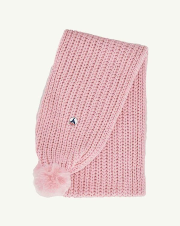 L’écharpe VANCOUVER est tricotée en laine mélangée. On aime l’originalité des côtes perlées et des pompons.